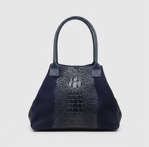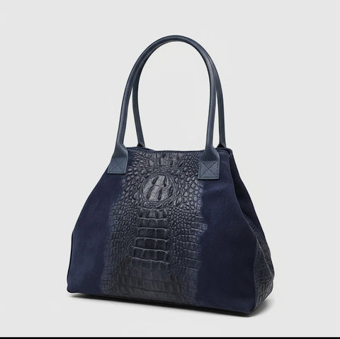 Bolso de hombro de piel  con estampado de cocodrilo, fabricado en Italia. Asas dobles, lo que lo hace práctico para llevar en la mano o al hombro. El bolso cuenta con una cremallera central y un cierre de botón magnético. El  interior está forrado con tela y tiene un bolsillo con cremallera.