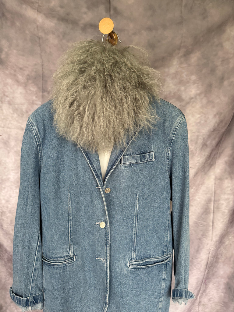 Gran cuello cerrado de pelo natural . Pegado al cuello . Cerrado con elásticos
