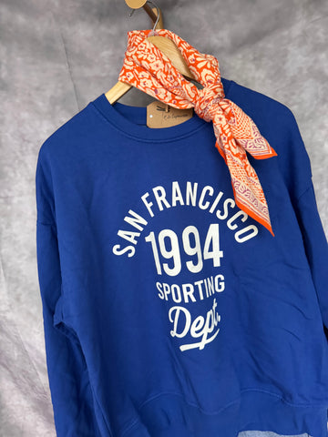 Sudadera de algodón fino , con corte básico y logo central. Talla única válida hasta talla XL .