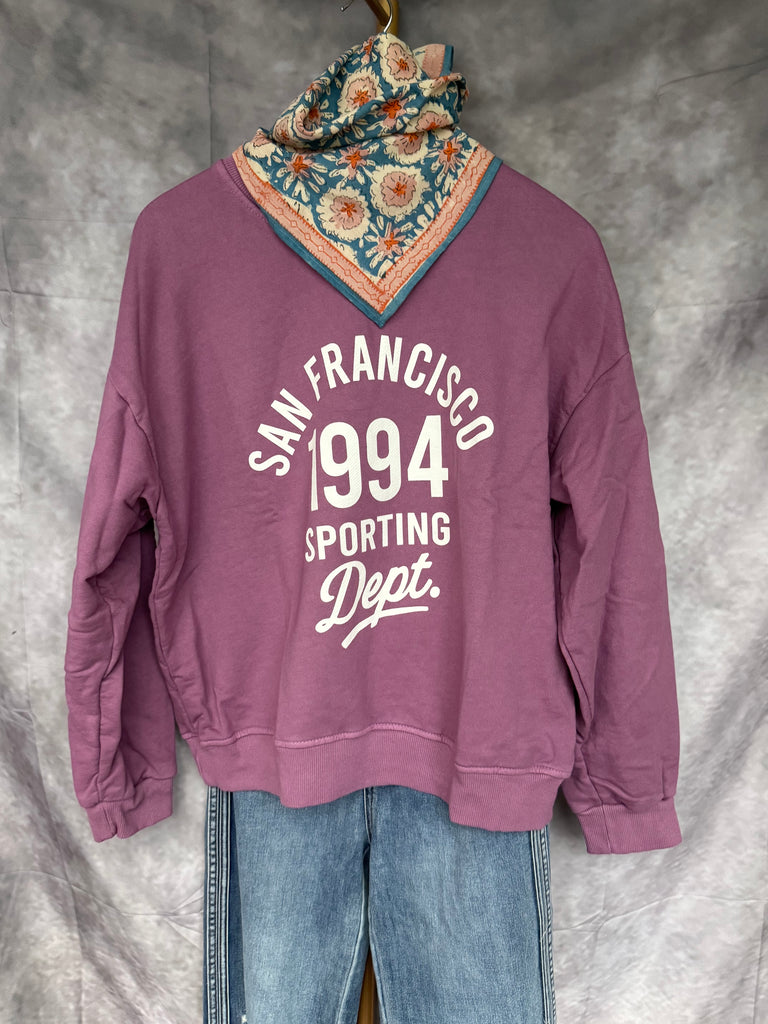 Sudadera de algodón fino , con corte básico y logo central. Talla única válida hasta talla XL .