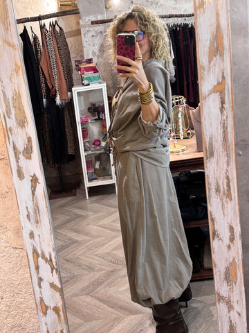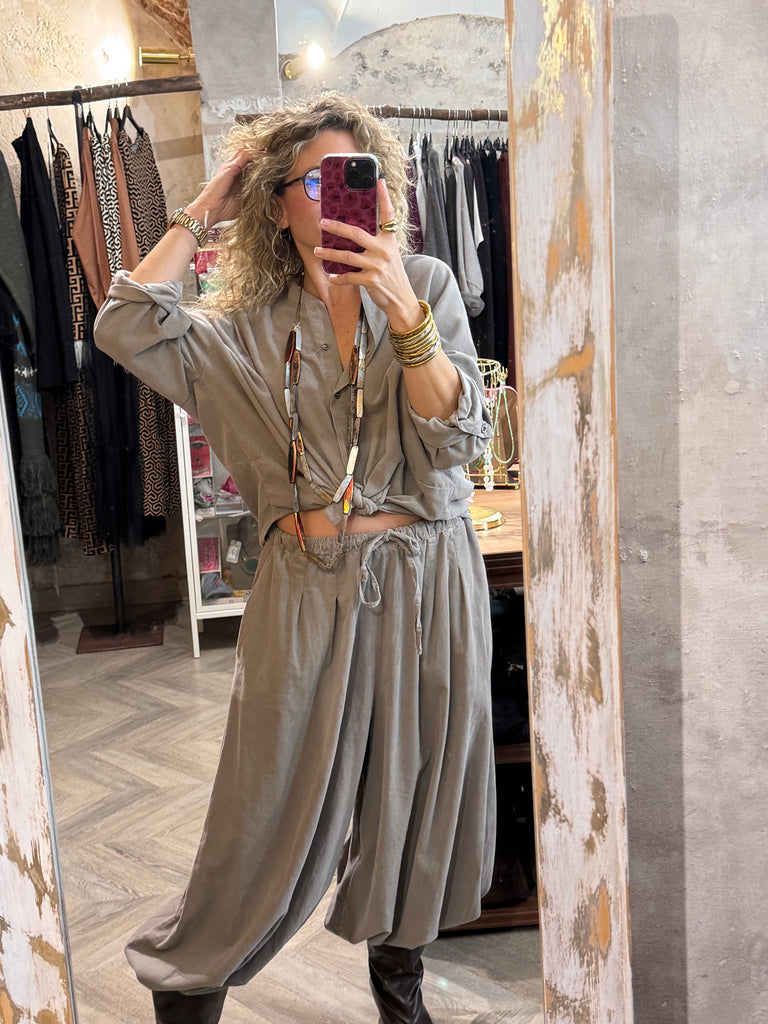 Pantalón bombacho de pana . Cintura con elástico . Con bolsillos.