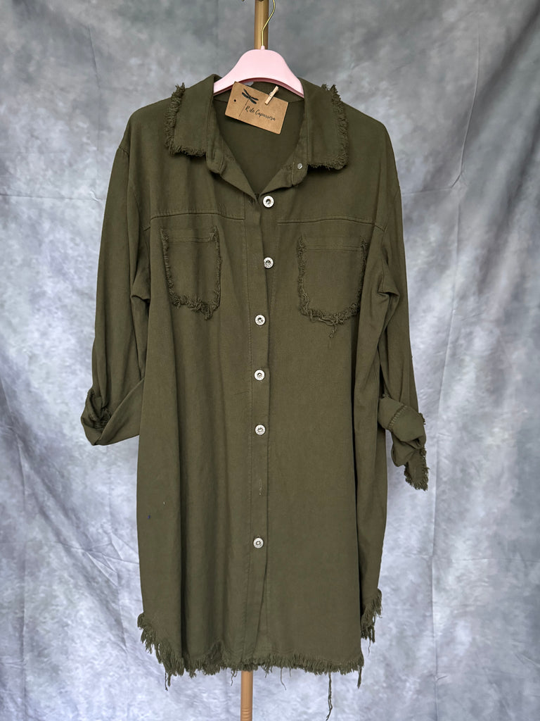 Cazadora vaquera larga kaki