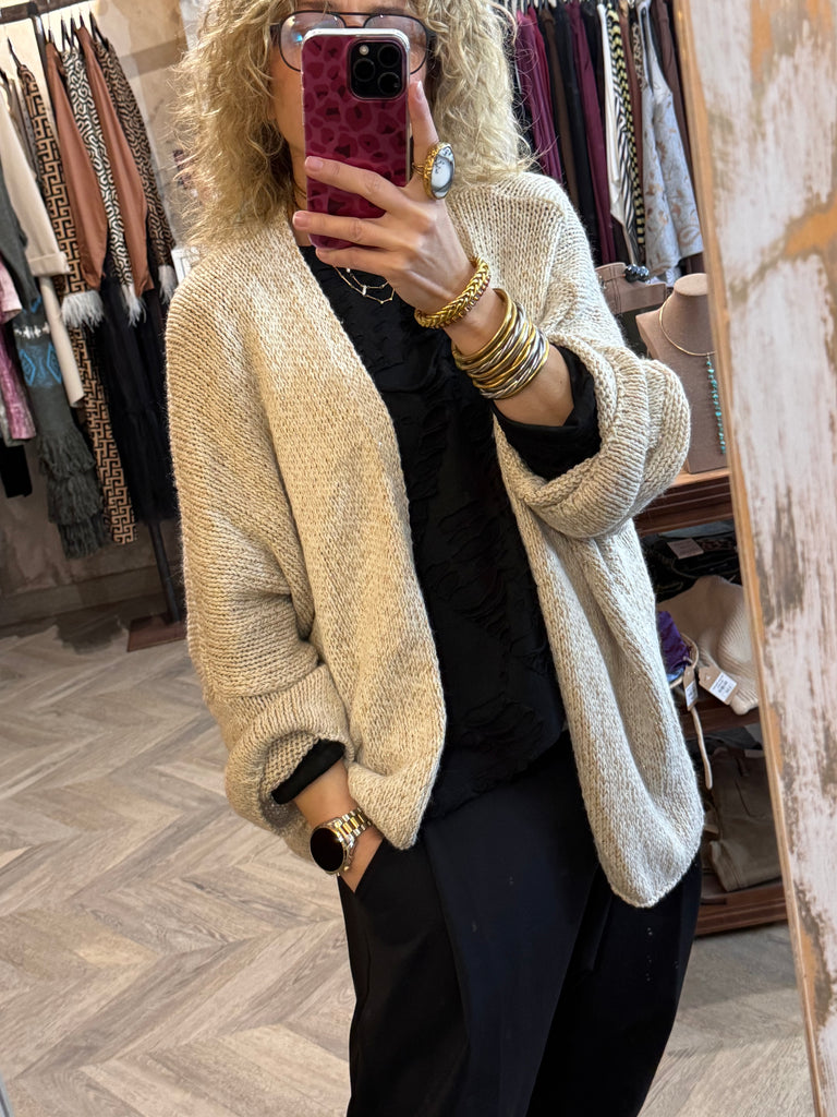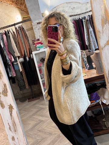 Chaqueta de punto con hilo metalizado . Corte amplio.