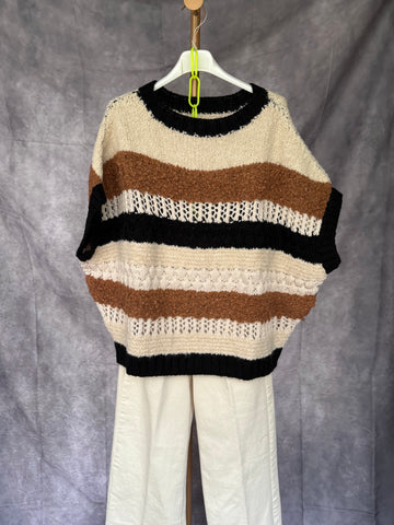 Jersey de punto con diferentes tonos y bordados . Media manga.