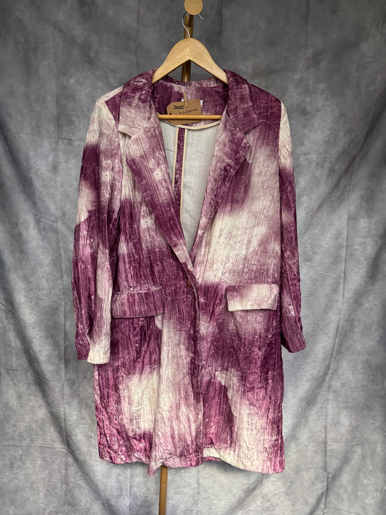 Levita de terciopelo en estampado de diferentes tonos estilo Tie dye  . Con bolsillos. Corte muy favorecedor con hombreras .