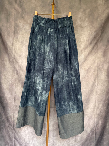 Pantalón vaquero corte amplio . Cintura con elástico . Con bolsillos.