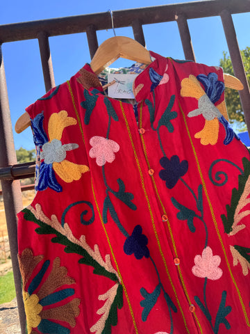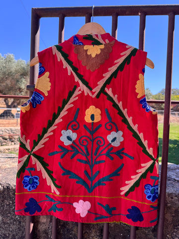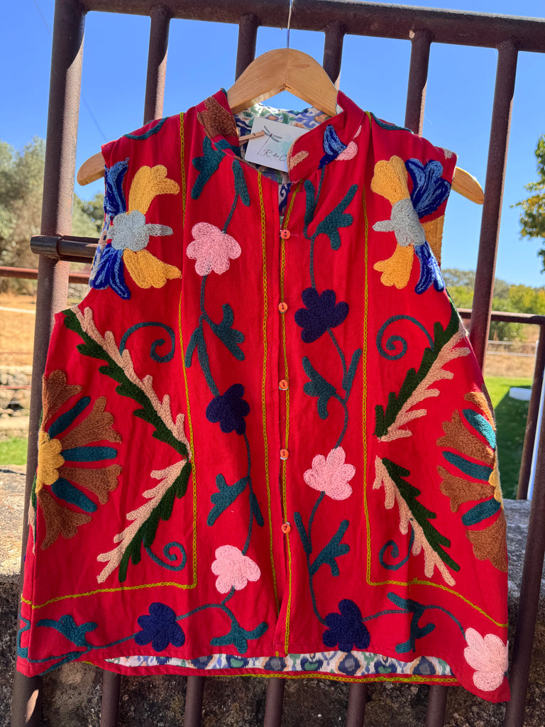Chaleco de algodón elaborado en India con bordado Suzani.