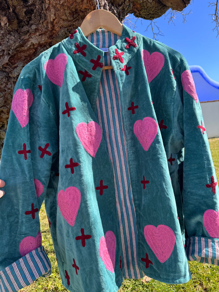 Chaqueta de terciopelo elaborada en India con bordado Suzani.