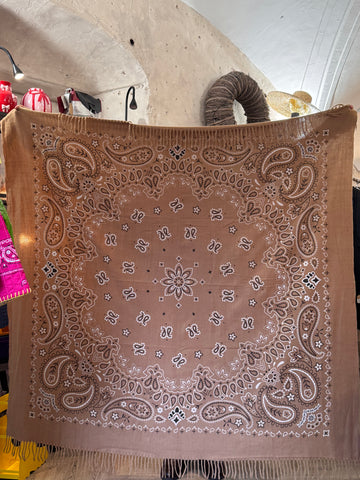 Maxi bufanda estampado bandana con flecos .