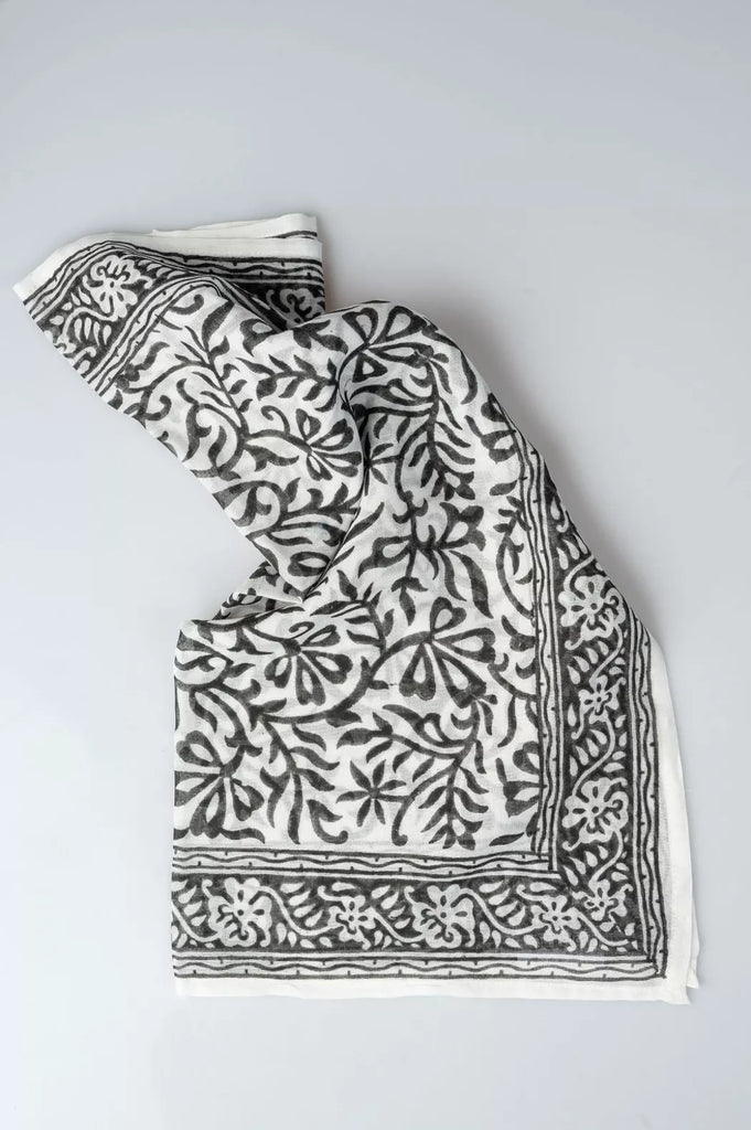 Este pañuelo ligero y transpirable, elaborado 100% en algodón, presenta  diseños estampados a mano. Con un tamaño de 50x50 cm, es ideal para usar como pañuelo en la cabeza, accesorio para el cuello o detalle para el bolso.