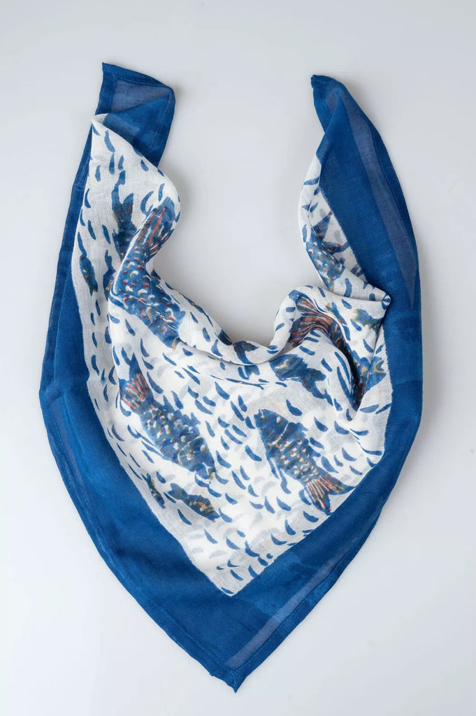 Este pañuelo ligero y transpirable, elaborado 100% en algodón, presenta  diseños estampados a mano. Con un tamaño de 50x50 cm, es ideal para usar como pañuelo en la cabeza, accesorio para el cuello o detalle para el bolso.