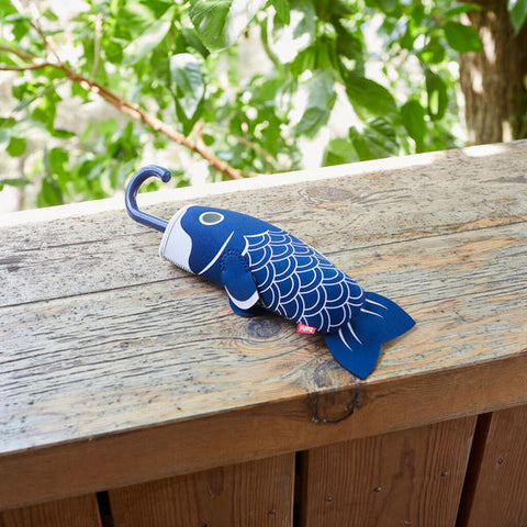 DISEÑO ORIGINAL. Paraguas de patrón gráfico que simula escamas de pez. Incluye una funda con diseño de carpa koi.