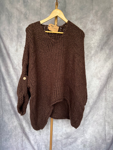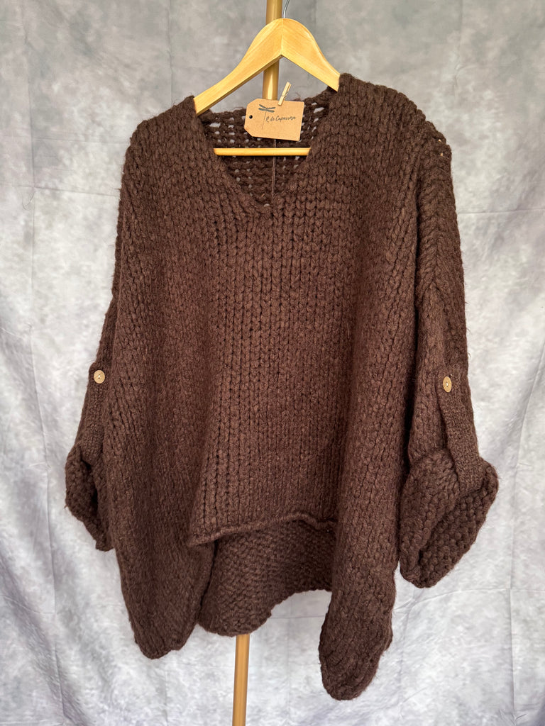Jersey  largo punto abierto . Corte amplio . Manga larga con botón de madera .