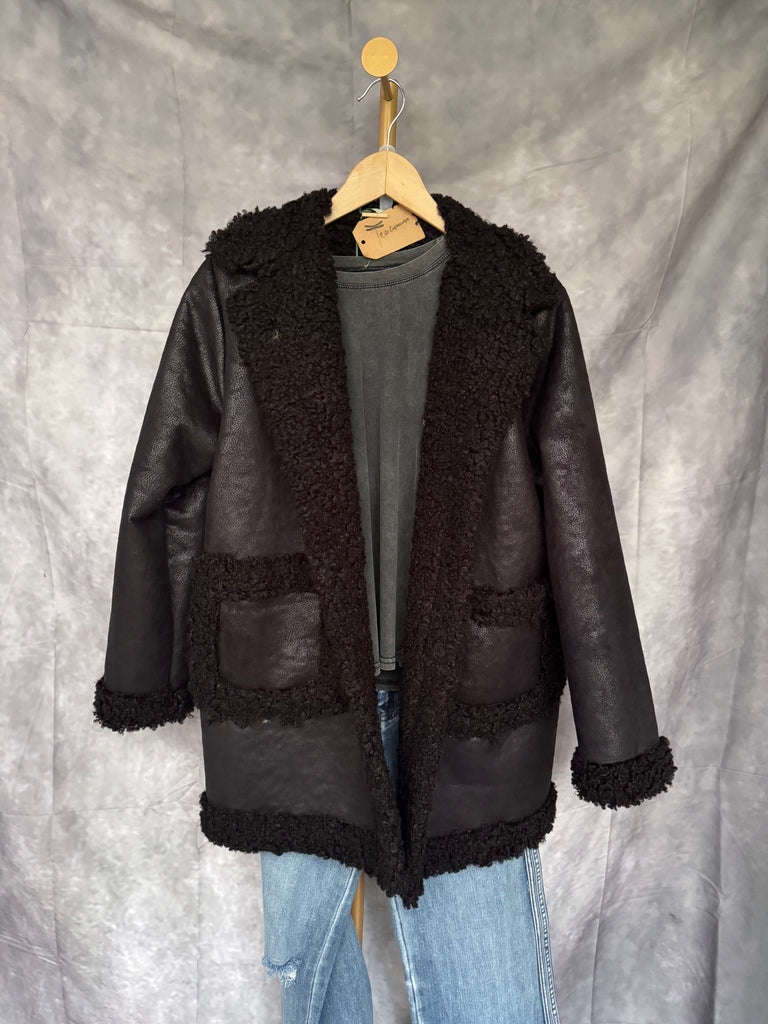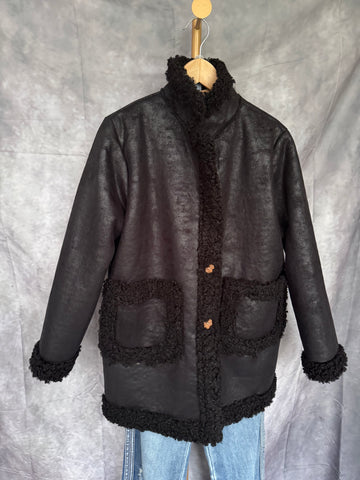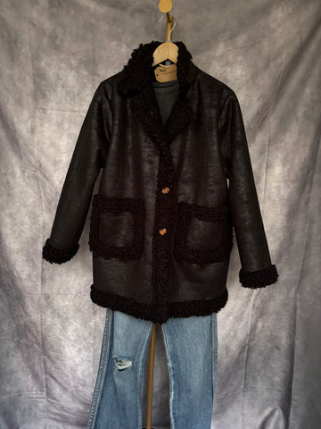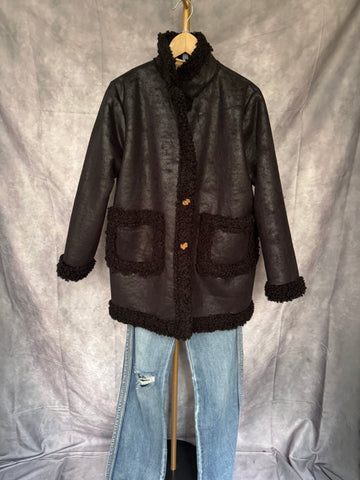 Abrigo doble faz de eco piel efecto ante . Cierre frontal con botones . Con bolsillos.