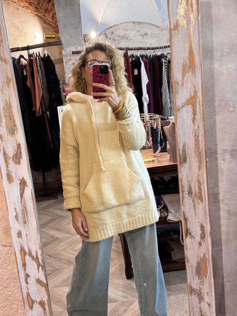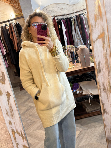 Jersey de punto largo con capucha.