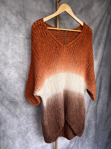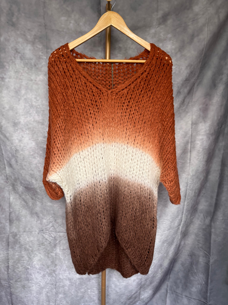 Jersey  largo punto abierto . Corte amplio . Manga francesa.