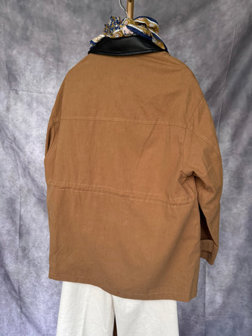 Chaqueta estilo parka de algodón en color camel y solapa ecopiel . Cierre con cremallera. Cordón para ajustar la cintura.
