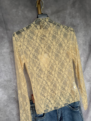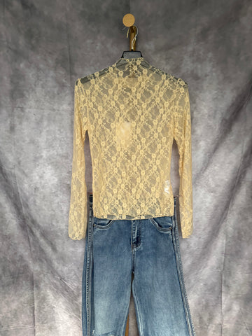 Camiseta de encaje en color beige .