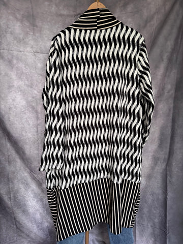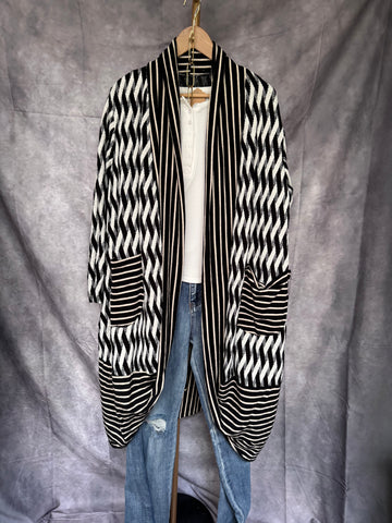 Abrigo punto estampado en tonos grises . Corte amplio . Con bolsillos.