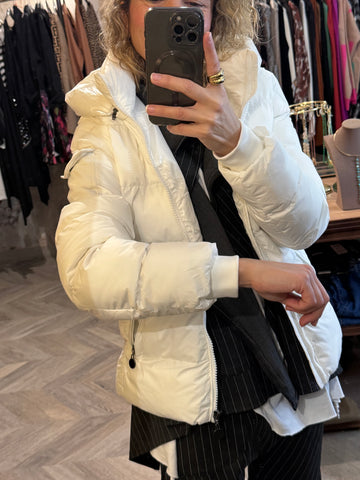 Anorak corto , con capucha desmontable . Puños con elásticos .