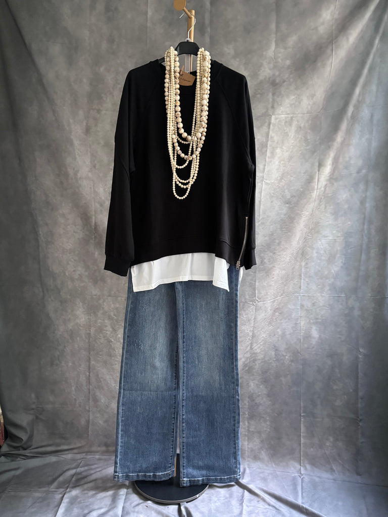 Sudadera con detalle de bajo imitando a camiseta . Cremalleras laterales.