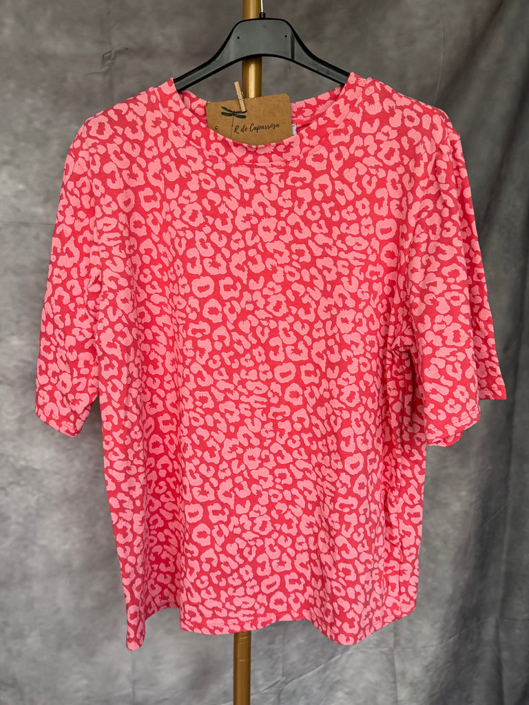 Camiseta de algodón manga corta . Diseño animal print .