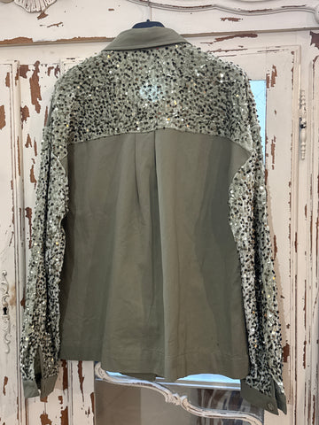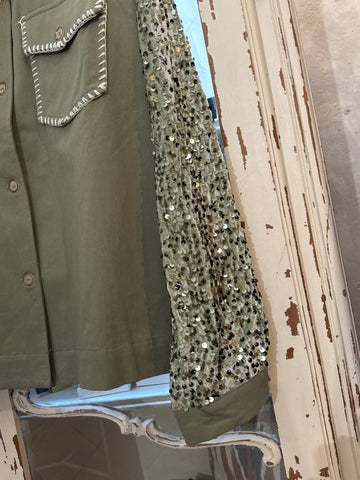 Sobrecamisa de algodón con mangas de terciopelo con lentejuelas