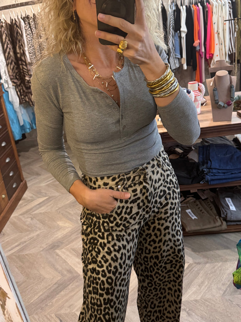 Camiseta básica de canalé . Manga larga con botones .