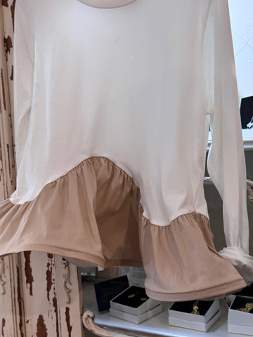 Camiseta de manga larga en color blanco con detalle de volante . Talla única .