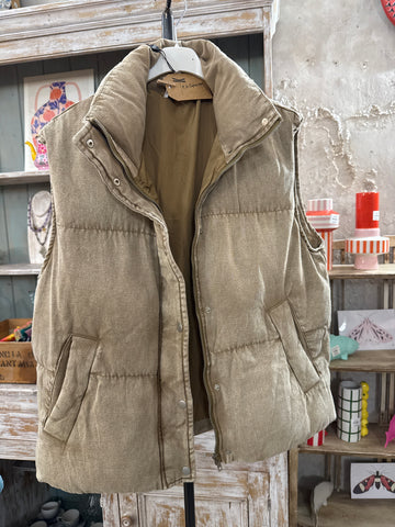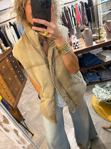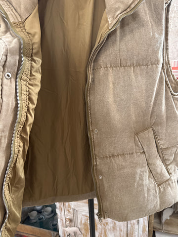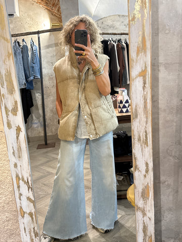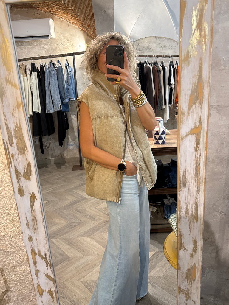 Chaleco tejido vaquero en color camel . Acolchado y con forro .