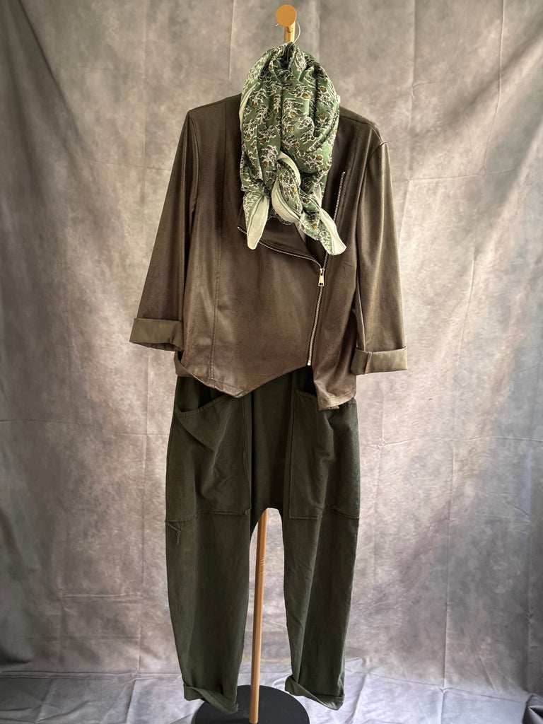 Pantalón baggy de pana fina . Cintura elástico . Con bolsillos.