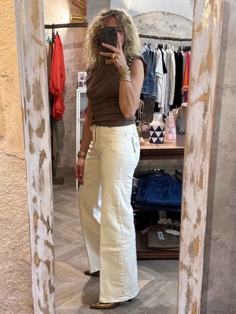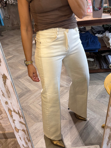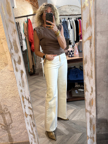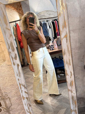 Vaquero color claro . Con detalle de trenza en la cintura . Cierre con cremallera .