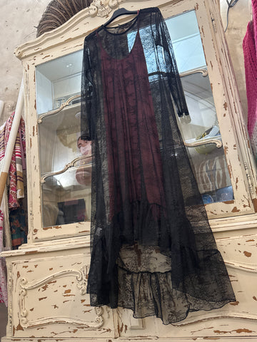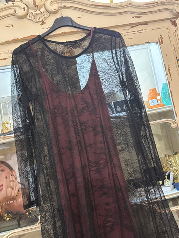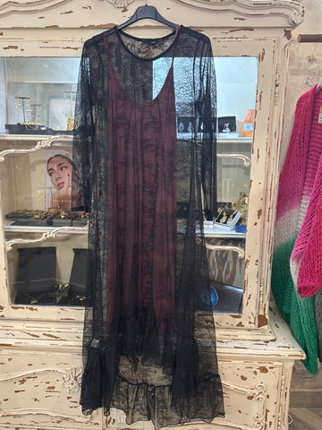 Vestido largo de encaje con vestido de tirantes  a modo de forro .