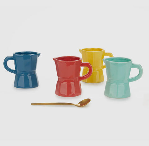 Este juego de cuatro tazas de café no es sólo una colección; es un homenaje a la icónica cafetera Moka y su rica y aromática bebida, que le ofrece una deliciosa experiencia de café en cuatro colores únicos.