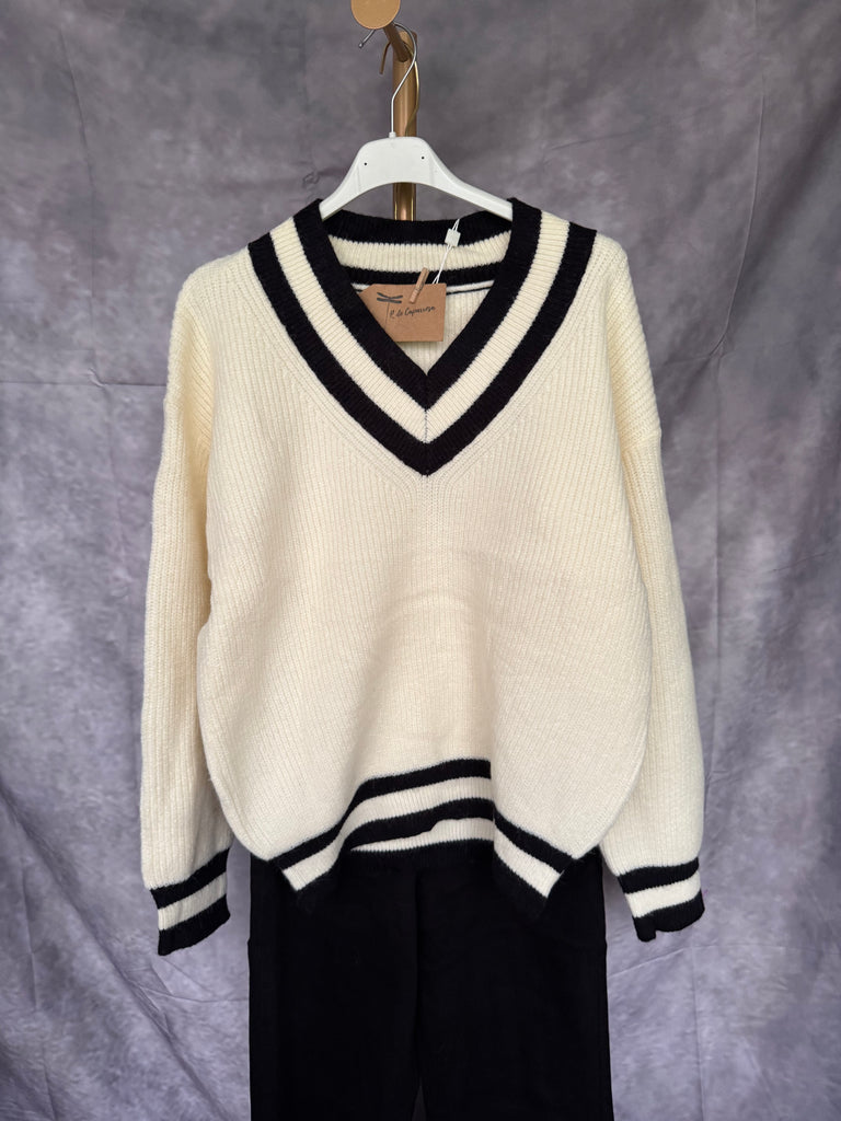 Jersey en color crudo con rayas en negro