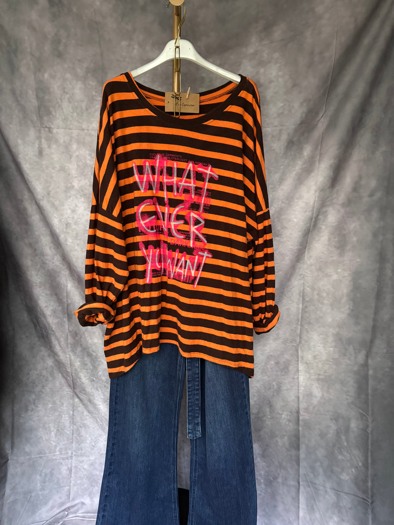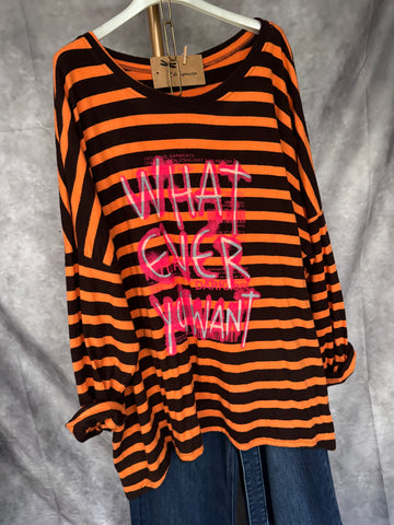 Sudadera corte oversize estampado rayas con dibujo estilo grafitti en flúor . Tejido suave y afelpado .