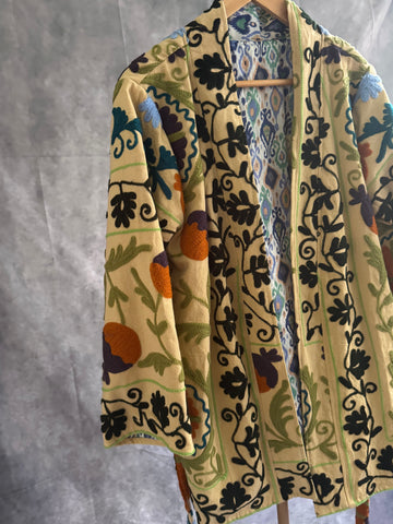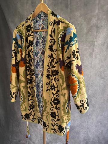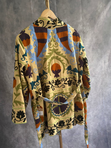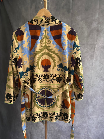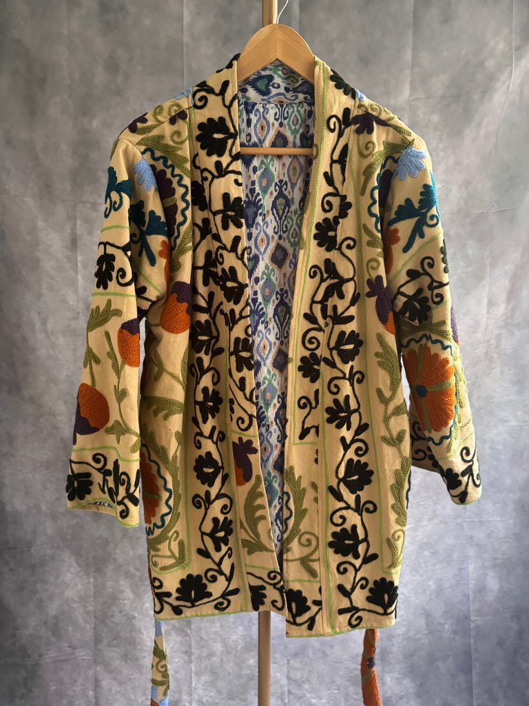 Kimono de algodón elaborado en India con bordado Suzani.