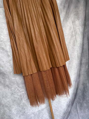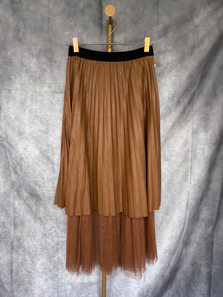 Falda plisada de eco piel con tul debajo . Cintura con elástico .