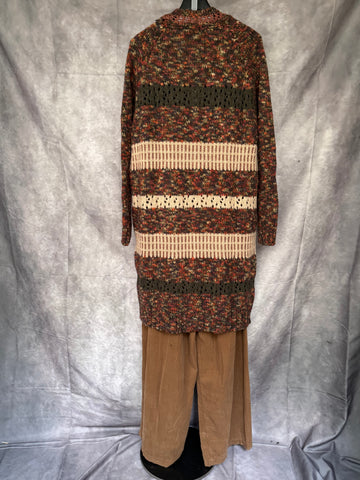 Chaqueta larga de punto en diferentes tonos con detalles en lurex.